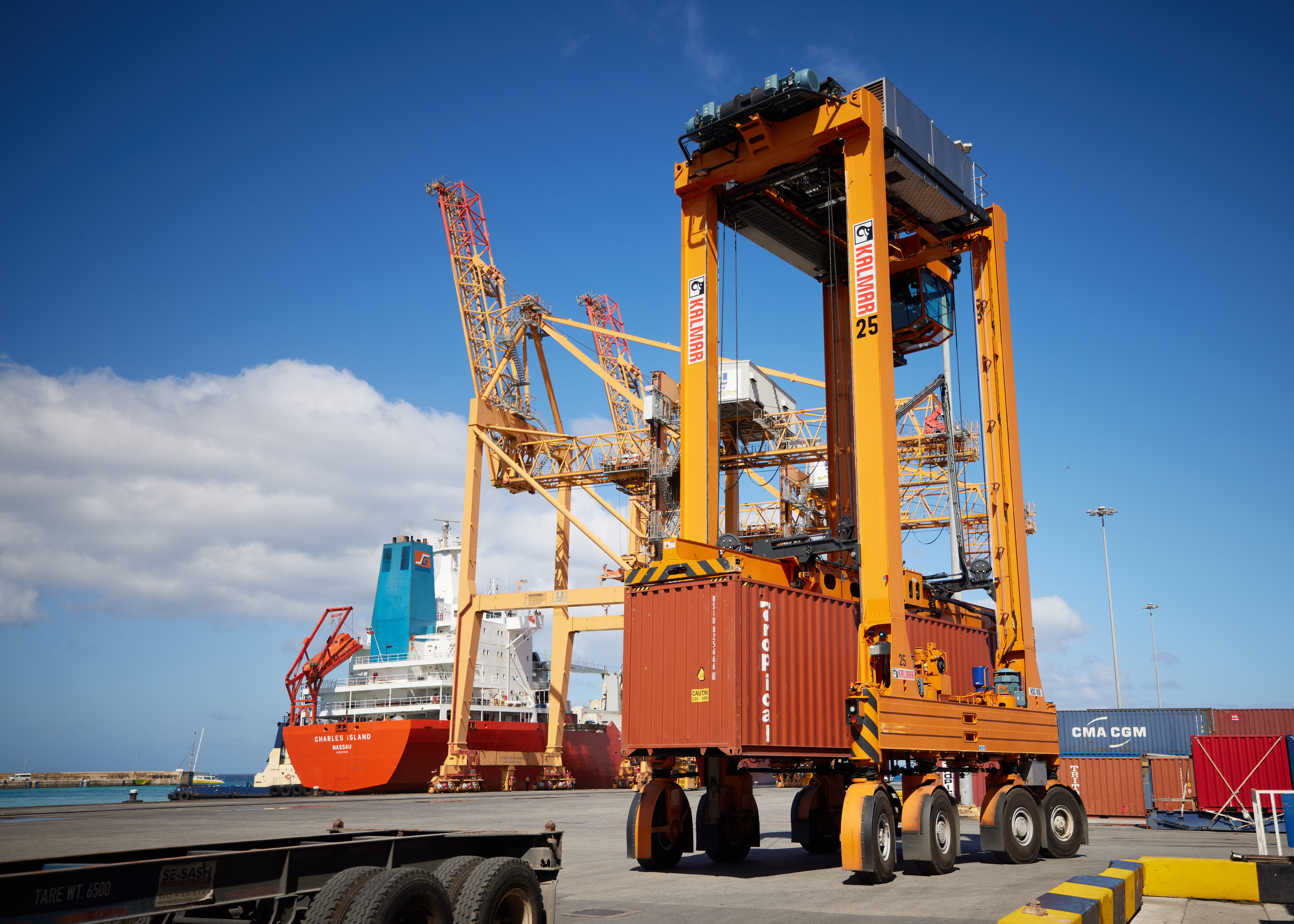 Kalmar is part of Cargotec. Cargotec's (Nasdaq Helsinki: CGCBV) sales in 2023 totalled approximately EUR 4.6 billion and it employs around 11,400 people. www.cargotec.com