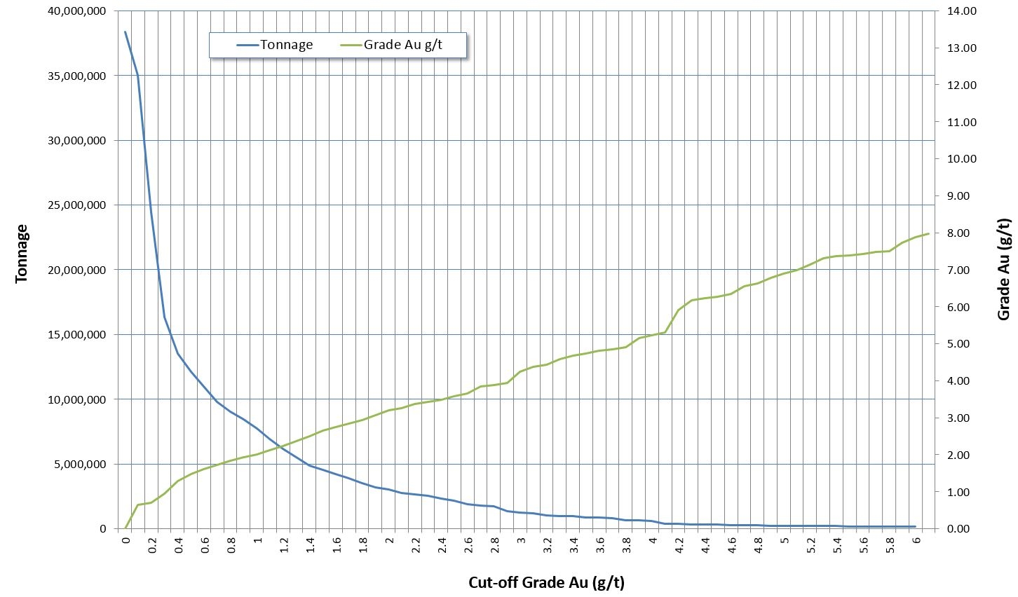 - A Cut-off grade of 1 g/t Au has been applied to demonstrate reasonable prospects for economic extraction.