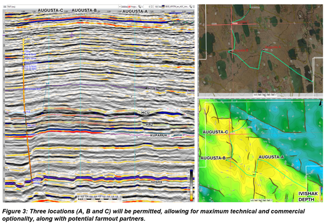 Augusta is the highest-priority target within the Company's portfolio because it represents a material, relatively low-risk and near-term value creation opportunity. Location selection and well planning are supported by well-defined structural traps and seismic amplitude anomalies consistent with proven nearby reservoirs.