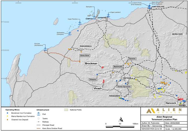 Alien Metals Limited (AIM: UFO), a minerals exploration and development company, is pleased to provide an update on its Pilbara iron ore portfolio following the completion of an independent technical review by ERM Australia Consultants Pty Ltd ("ERM"). The ERM review comprised a high-level prospectivity and exploration targeting assessment and did not include the preparation or estimation of Mineral Resources or Ore Reserves. The review assessed prospectivity and prioritised next-stage work programs across the Company's Pilbara iron projects, including the West Pilbara Vivash Gorge and Brockman projects, and the East Pilbara Hancock Project area.