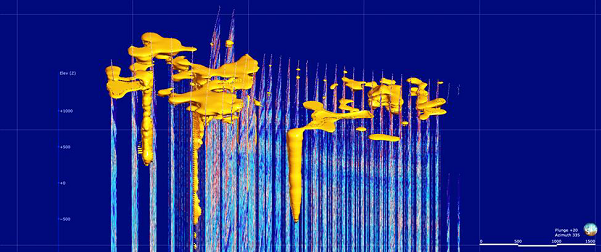Examples of the output given by micro-seismic surveys are shown below. These map the underground reality before drilling begins. They detect: fractures, voids, and shear networks, and locate blind quartz veins.