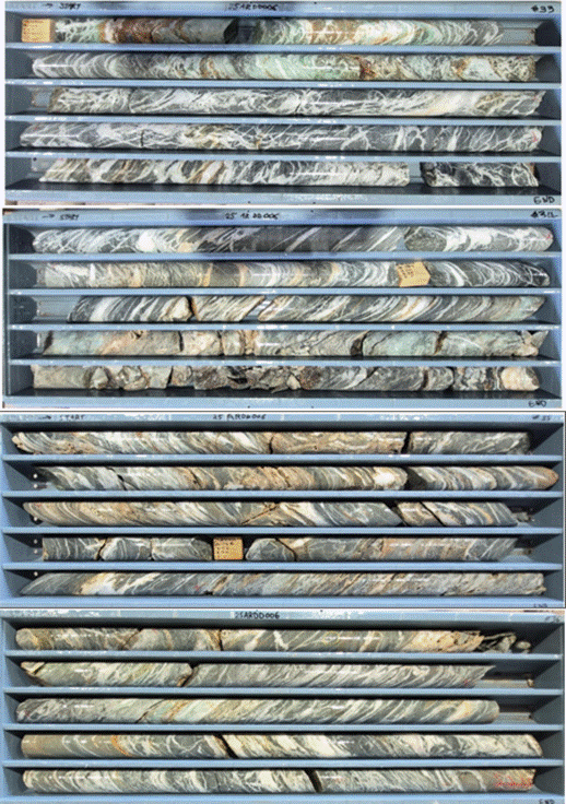 Figure 5: 25ARDD006 - drill core from 140.0-164.8m showing intensive quartz veining and related alteration within interpreted Titan East shear zone (assays pending)