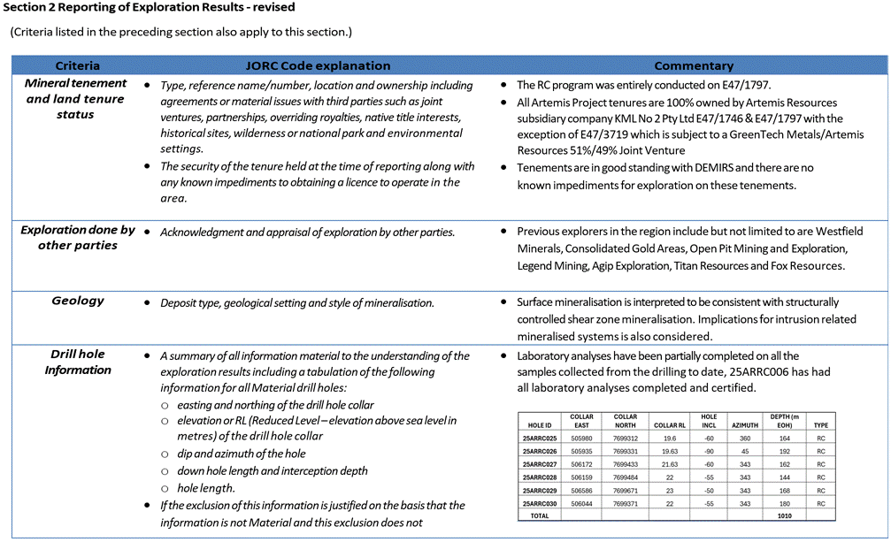 · Results from 25ARRC025 are the first received from a 6-hole RC program in November testing a 600m strike length of the shear zone, with numerous assays pending.