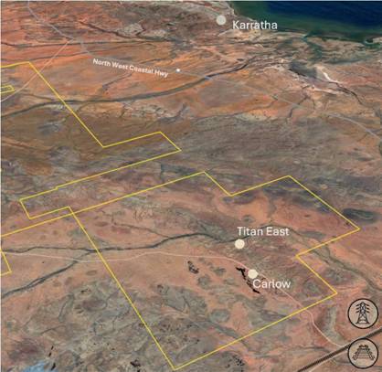 Figure 2: Carlow tenement showing outline of Carlow gold-copper deposit, location of Titan East and access to Carlow Project area from Karratha