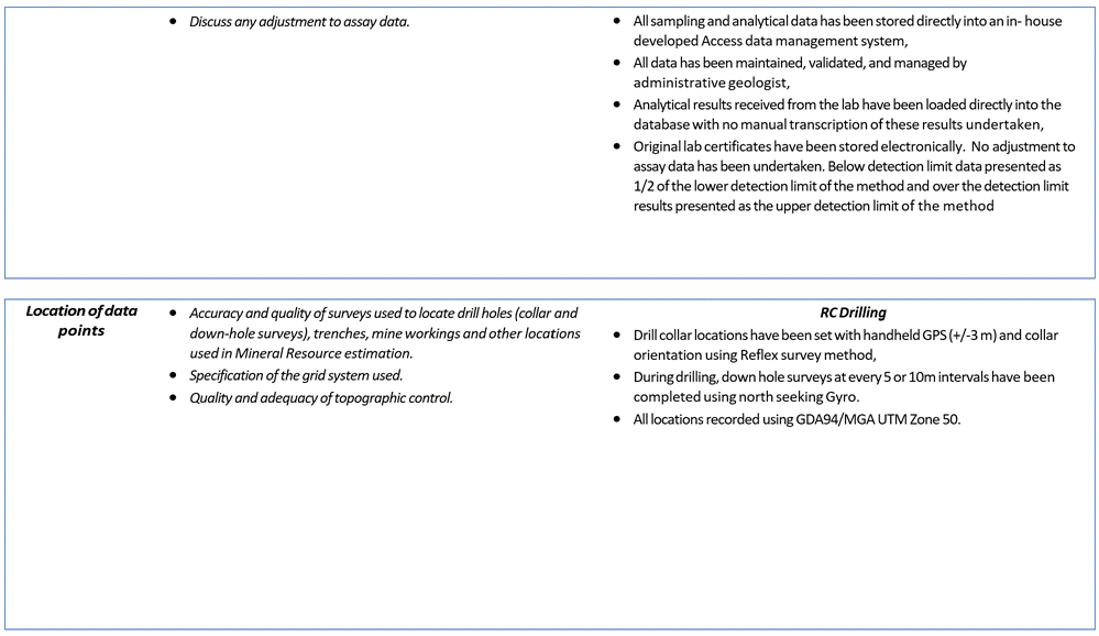 To the extent that this announcement contains references to prior exploration results which have been cross referenced to previous market announcements made by the Company, unless explicitly stated, no new information is contained. The Company confirms that it is not aware of any new information or data that materially affects the information included in the relevant market announcements and, in the case of estimates of Mineral Resources, that all material assumptions and technical parameters underpinning the estimates in the relevant market announcements continue to apply and have not materially changed.