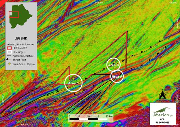 Aterian Plc (AIM: ATN), the Africa-focused critical metals exploration company, is pleased to announce encouraging results from an independent geophysical study completed over Prospecting Licence PL265/2025 ("Licence") in the Kalahari Copperbelt ("KCB"), in the Republic of Botswana ("Botswana"). The Licence is wholly owned by Atlantis Metals (Pty) Ltd, in which Aterian has a 90% interest. The award of the Licence was previously announced on 15 December 2025.