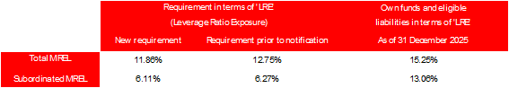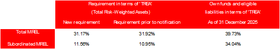 As of 31 December 2025, the structure of own funds and eligible liabilities of the Resolution Group meets the requirements of Total MREL and Subordinated MREL3.