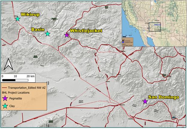 Bradda Head Lithium Ltd. is a North America-focused lithium development group. The Company currently has interests in a variety of projects, the most advanced of which are in Central and Western Arizona: The Basin Project (Basin East Project and Basin West Project) and the San Domingo Project.