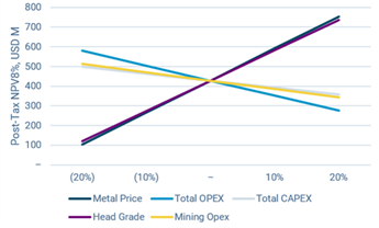 · CAPEX of US$276 Million which includes US$ 26.5 Million in contingency and US$15.1 Million in growth. This assumes a payback period of 4.7 years from start of production.