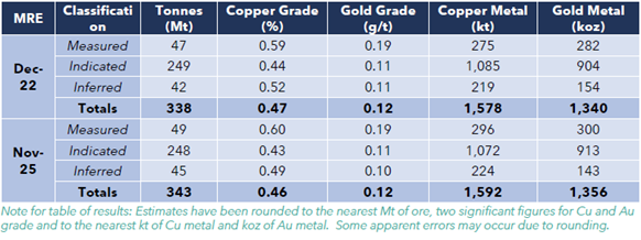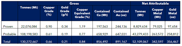 · Maiden JORC 2012 Compliant Ore Reserves estimate of 130.2Mt at an average copper grade of 0.66% and a gold grade of 0.21g/t, which supports a 35-year mine life;