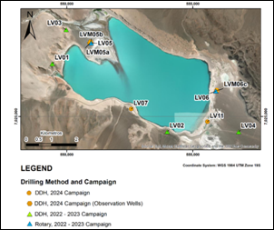 · For the surface brine resource, an average lithium grade was used for the entire surface water body based on the consistent values obtained; thus, there is a high certainty. · For the sub-surface resource, the geological interpretation was made based on the TEM and gravity surveys conducted by Geodatos. The lithological interpretation was confirmed by the January - May 2022 diamond drillhole campaign (LV01 to LV04), December 2022 - May 2023 drillhole campaign (LV05 & LV06), and 2024 campaign (LV07 & LV11). · Low resistivities are associated with volcaniclastic sediments saturated in brines, but also with tuff, very fine sediments, or clays. The direct relationship between the low resistivity layer with the overlying hypersaline lagoon raises the confidence that the low resistivities are associated with brines. · Drillholes confirm the geological interpretations.