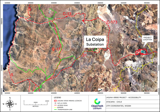 As part of the PFS process a plant location trade-off study was undertaken as announced to the market on July 02, 2024 (Link). The study resulted in the decision to locate the downstream Lithium Carbonation Plant ("LC Plant") in Copiapó, and the plant for the DLE and eluate concentration stages which produce a concentrated lithium chloride (LiCl) solution, at the Laguna Verde project site, as shown in Figure 1. This configuration greatly reduces the footprint at the project site, from power supply, storage, camp and plant facilities, along with construction phase and environmental impacts. With approximately 70% of the operational workforce employed at the carbonation plant, locating it in Copiapó provides major advantages in accessing a skilled workforce, along with existing infrastructure, power supply and other inputs. This carbonation plant could be expanded to process LiCl from additional future projects in the region.
