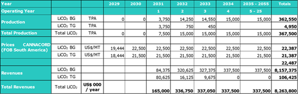 · Revenues are generated from the sale of lithium carbonate products and are calculated based on the applicable pricing assumptions and annual production volumes. Revenue projections reflect the product mix during the ramp-up period and steady-state operations and apply constant real pricing assumptions over the Project life. · The information regarding lithium market research was provided to CleanTech Lithium by Benchmark Minerals Intelligence (Benchmark) in a report dated July 2025. · For long-term lithium carbonate price forecast used in the project's financial modelling more up to date information is used based on forecasts from Canaccord Genuity provided in November 2025. · Based on data current as of November 2025, Canaccord forecast a long-term lithium carbonate price of US$22,500 per tonne of battery grade lithium from 2030 onwards. This price forecast was used for determining the forecast revenues in the project economic modelling with sensitivities being run around this of +/- 20%. · As the Canaccord projection extends only to 2030, prices have been assumed to remain constant, in real terms, at the 2030 level for the remainder of the evaluation period. · Prices are treated as real, constant-dollar values and are applied consistently throughout the life of the project. · During the production ramp-up period, a portion of product is assumed to be sold as technical-grade lithium carbonate, with the balance sold as battery-grade material. The former commands a slightly lower price in the international market. Once steady-state production is achieved, the product mix stabilizes at 100% battery grade.