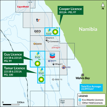 Eco (Atlantic) Oil & Gas Ltd. (AIM: ECO, TSX ‐ V: EOG) (Toronto, Canada), the oil and gas exploration company focused on the offshore Atlantic Margins, is pleased to announce that it has signed an agreement to farm down 60% Participating interest ("PI") in all three of its Petroleum Exploration Licenses ("PEL") offshore Namibia to BP Namibia Energy Ltd, a wholly owned subsidiary of BP Exploration Operating Company Limited ("BP").