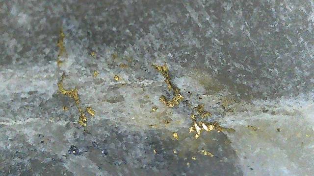 Gold that can be seen with the naked eye in drill core or rock samples. Visible gold does not necessarily indicate economic grades but is considered a positive indicator in gold exploration. |