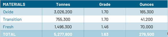 · Initial due diligence conducted by Hamak, based upon the CAA data room, has returned very positive results, even using a more conservative modelling approach, to define a robust, indicated gold resource of 252,659 ounces of contained gold at an average grade of 0.58g/t.