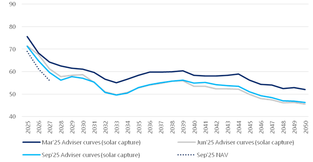 Drivers of power price movement: In the near term, lower commodities price forecasts and increased forecast solar capacity build out have slightly reduced prices compared to the previous quarter. Medium term prices are consistent with the previous forecast. In the long term, prices have increased since the previous quarter due to an increase in forecast demand from datacentres, and reduced forecast renewables deployment. Solar captures rates remain consistent with the previous quarter across the forecast.