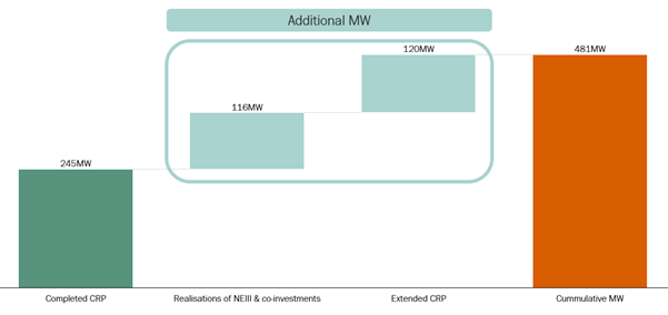 · The Company will extend its Capital Recycling Programme ("CRP") by up to 120MW by selling assets in the portfolio identified for potential disposal as shown in the treemap earlier. These assets have been selected based on their limited near-term value enhancement potential. The Company expects the additional disposals to be executed in phases over multiple years.