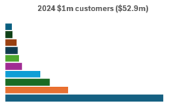 Increased the number of $1m customers to 14 (2024: 10), delivering better revenue diversification. |