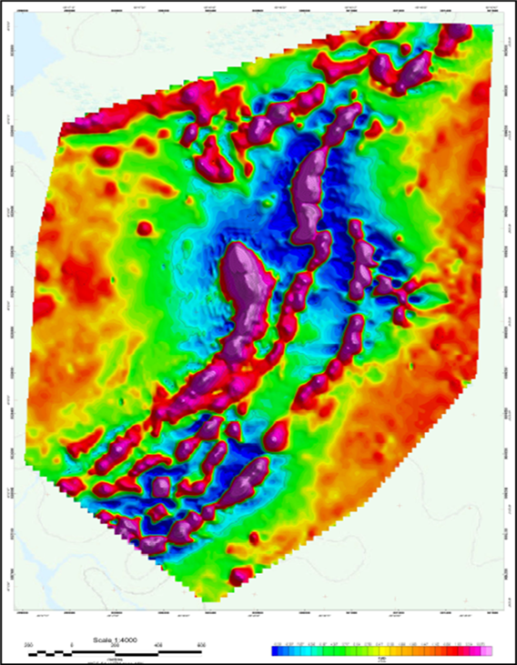 The deliverables of the high-resolution magnetics surveys and their data products, including six processed data products and associated maps (Figure 2) as well as the 3D inversion model (Figure 3) helped to refine planned drill hole orientations to target high grade base metal zones at depth, as well as providing inputs and informing the mineral system modelling for the Wishbone Prospect.