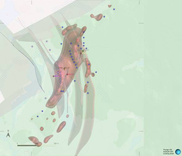 Figure 3: Oblique View of the 3D Wishbone Magnetic Inversion Model That Will Inform the Next Round of Drilling