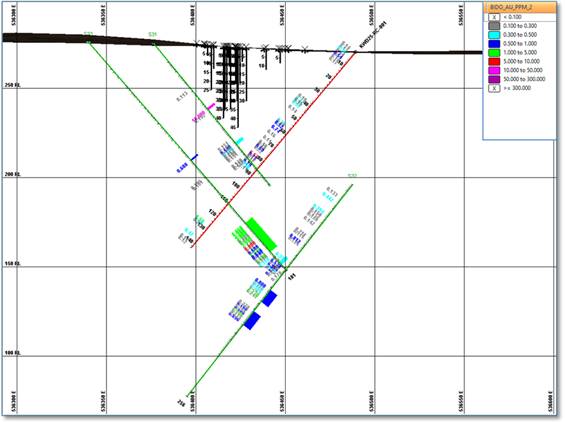 8 m @ 3.79 g/t Au from 34 m incl. 1 m @ 22.17 g/t Au from 36 m |