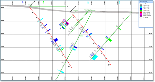 4 m @ 2.52 g/t Au from 34 m incl. 2 m @ 4.73 g/t Au from 34 m |
