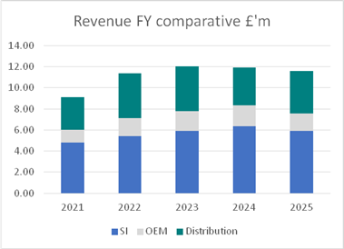 Ø OEM sales experienced a decline of 12% to £1.7m in 2025 (2024: £1.9m) as previously indicated as a result of a strong 2024 which included the clearance of prior-year backorders. This was further impacted by supply constraints relating to a component provided by a key OEM partner which has now been resolved |