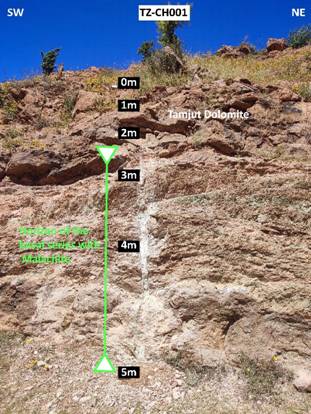 The first phase of fieldwork at Tirzzit consists of testing the grade and thickness of mineralisation along strike, from west to east, on outcrop in order to confirm: