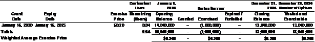 On January 13, 2026, the Board of Directors declared a standard quarterly dividend of C$0.0125 per share and an additional bonus dividend of C$0.015 per share, for a total dividend of C$0.0275 per share. These dividends were paid on February 13, 2026.