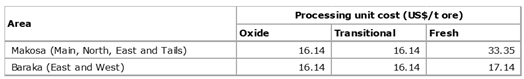 A capping level (top cut) of 10g/t Au is applied to all Makosa domains. An 8g/t Au top cut was applied to the Baraka 3 grade estimates.