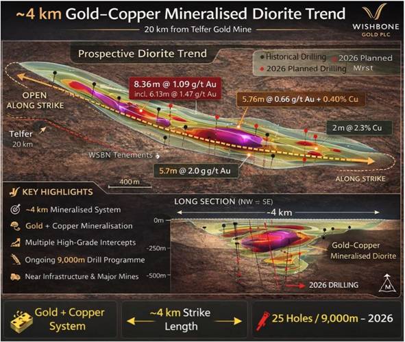 · 25 hole drill programme (9,000m) planned for 2026 targeting extensions to the mineralised trend.