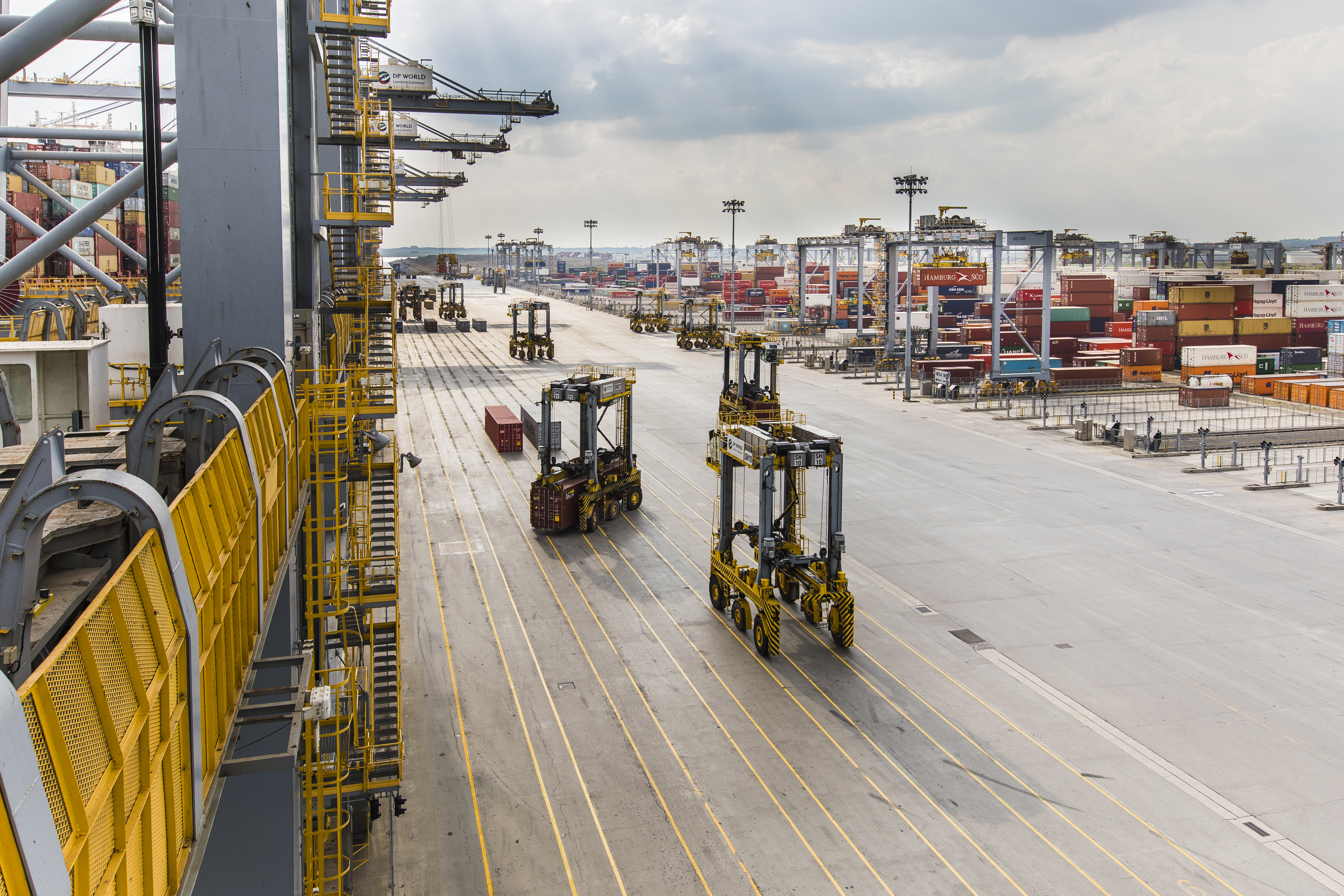 Kalmar equipment and automation solutions are at the core of DP World London operations at London Gateway, with the terminal operating 60 Kalmar automatic stacking cranes (ASCs) and 40 Kalmar straddle carriers.