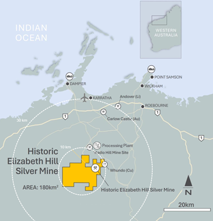 Through the consolidation of surrounding land packages into a single contiguous 180km2 package, significant exploration and growth potential has been created near mine and regionally. The land package holds a significant portion of the Munni Munni fault system, and other fault systems subparallel to the Munni Munni fault system, which are considered prospective for Elizabeth Hill silver deposit analogues.