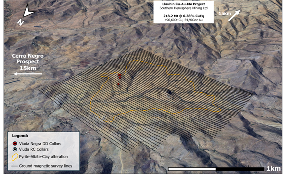 Great Southern Copper plc (LSE: GSCU), the company focused on copper-gold-silver exploration in Chile, is pleased to announce that it has commenced a ground magnetic survey at its Viuda porphyry Au-Cu prospect ("Viuda") at the Company's Especularita project.